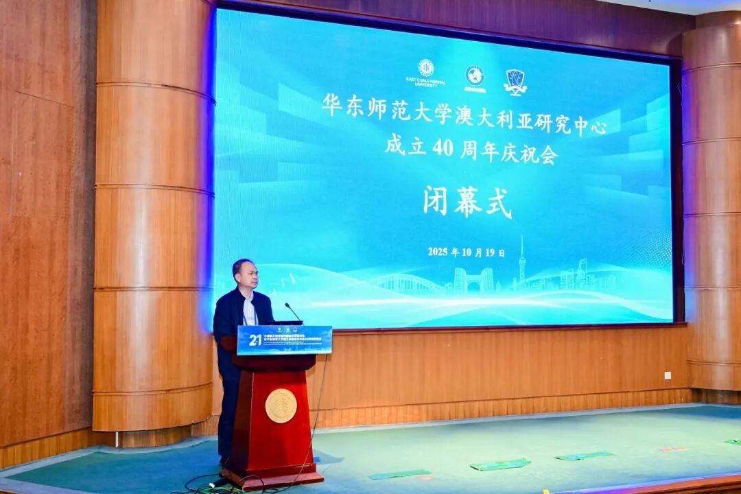 2025年10月17日-19日,第二十一届中国澳大利亚研究国际学术研讨会暨华东师范大学澳大利亚研究中心40周年庆祝会在华东师范大学普陀校区圆满举行。此次盛会汇聚校院领导、海内外专家及师生代表,共同回顾奋斗历程、总结累累硕果,更擘画未来国别区域研究与中外人文交流的宏伟蓝图。