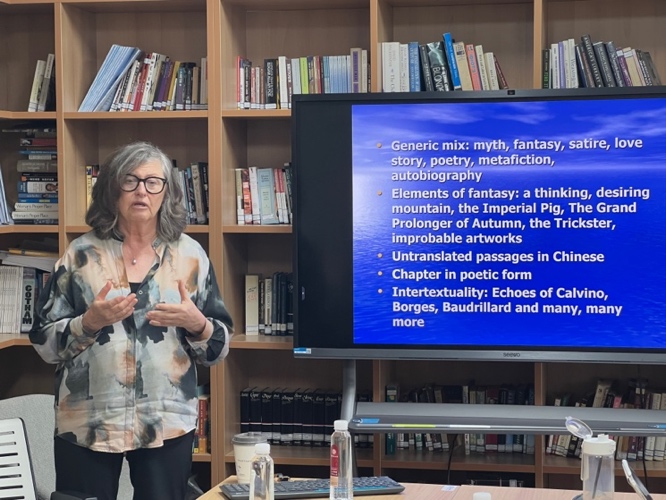 讲座伊始,Ommundsen教授向大家介绍了2025年迈尔斯·富兰克林文学奖得主Siang Lu的小说Ghost Cities这一作品。Ghost Cities斩获了这一澳大利亚最具声望的文学奖项,成为该奖历史上首部由华裔澳大利亚作家获得的作品。更令人瞩目的是,当年短名单中六分之五的作者来自少数族裔背景,标志着澳大利亚文学正走向真正多元的文化图景。