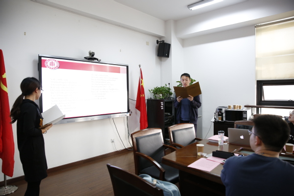 为深入开展“不忘初心、牢记使命”主题教育,进一步增强党员对共产党人初心和使命的理解,2019年10月30日,ag平台 2019级学术型研究生党支部在ag平台 319会议室开展了“不忘初心、知行合一”延安精神学习主题党日活动,校党委副书记朱民,学院党委书记闫露,党委副书记兼副院长江宇靖,ag平台 团委书记、2019级学术型研究生党支部书记叶青以及延安子长红色翻译社会实践团队成员参与了主题党日活动。此次活动由叶青主持。