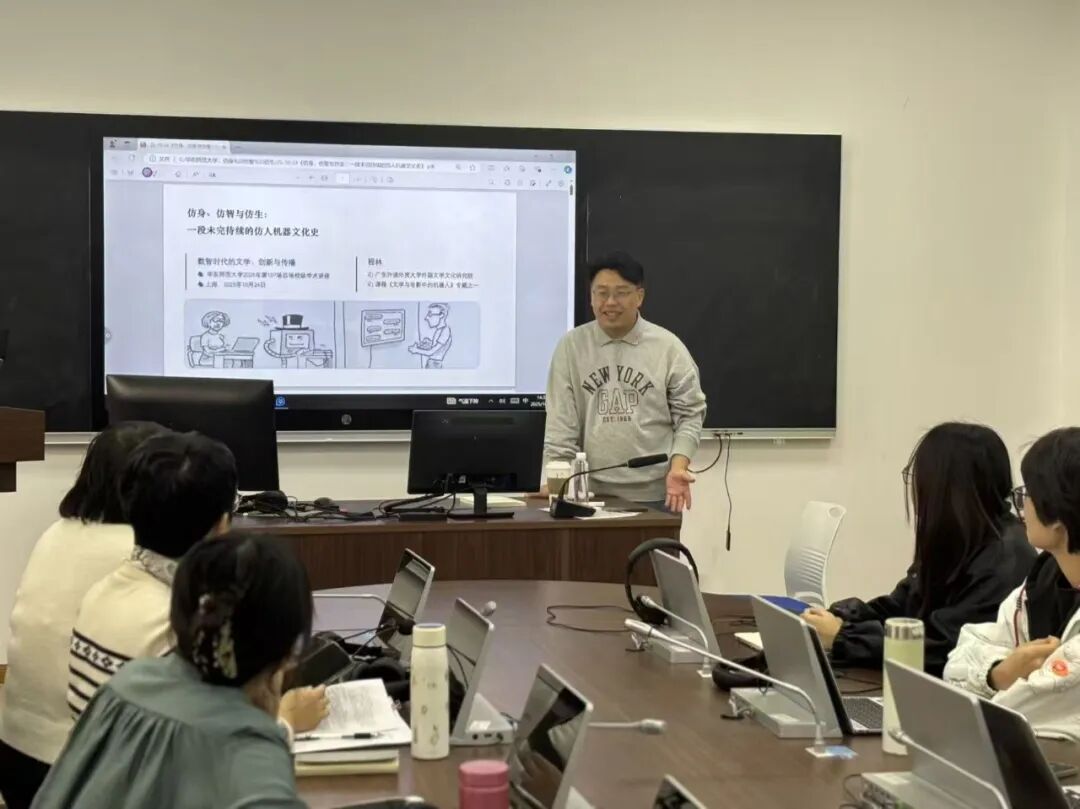 2025年10月24日14:30,应ag平台-ag真人娱乐-ag亚游官网 邀请,广东外语外贸大学程林教授在ag平台 116会议室做了题为“人与仿生机器人到底有何不同——来自哲学、科学和科幻思想实验的思考”的精彩讲座。本次讲座是华东师范大学百场校级学术讲座,由ag平台 文学研究团队主办。本次讲座由英语系陈贝贝博士主持,德语系冯晓春副教授与谈。ag平台 金桔芳副教授,解华副教授,李辉副教授等多位师生参加了本次讲座,并参与热烈讨论。