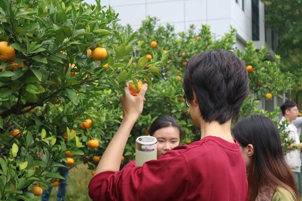 在互动体验环节,到场师生漫步橘园,精心挑选,细心采撷秋实,体验劳动与丰收的乐趣。现场洋溢的满足笑脸,让“橘园”不仅仅是一个文化符号,更成为了一个承载着秋日记忆的特色地标。