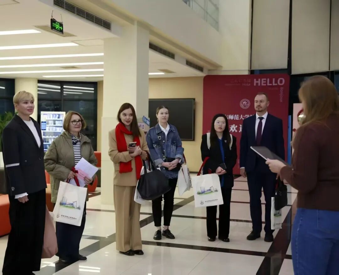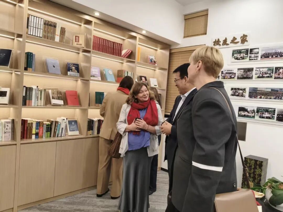 活动开始前,俄罗斯代表团参观了ag平台 翻译家成果陈列室。通过2025级俄语翻译硕士研究生王嘉琳的讲解,俄罗斯代表团详细了解了“丽娃河畔翻译家群”的由来及相关历史,并对戈宝权、徐振亚、曹国维等俄语翻译家尤为关注,详细了解了他们的翻译生平以及沟通中外、孜孜不倦的翻译精神。