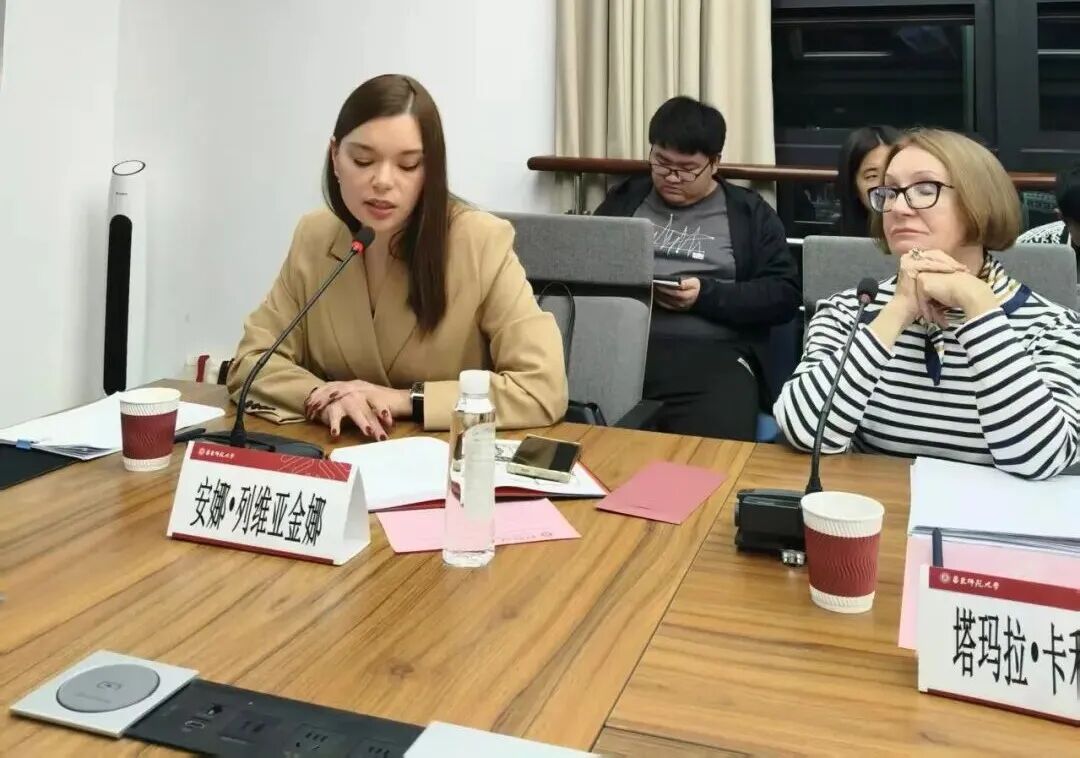 2025年11月3日,俄罗斯文化代表团到访ag平台 ,与俄语系师生共同举行“无国界诗歌·历史与现代性”诗歌翻译竞赛和朗诵活动,纪念俄侨女诗人拉丽莎·安德森诞辰115周年。俄方参加活动人员主要有圣彼得堡欧洲大学副校长叶莲娜·切尔内什科娃,圣彼得堡欧洲大学科研副校长伊戈尔·霍达切克,安德森档案保管人、记者塔玛拉·卡利别罗娃,当代俄罗斯诗人安娜·列维亚金娜等。ag平台 党委书记韩春红,俄语系教师胡学星、田洪敏、班婕、巴禹心以及俄语专业本硕博学生参加此次文化交流活动,俄语笔译专业研究生谭梦璐、宋媛媛担任主持和翻译。