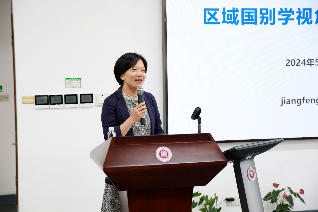 上海外国语大学原党委书记、上海外国语大学研究员、上海全球治理与区域国别研究院理事长,上海市区域国别学会会长姜锋博士开展报告