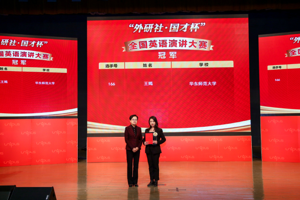获得本次大赛全国总冠军的王嫣是2018级本科生,以优异的成绩通过自主招生考入华东师范大学,就读于法学院。2018年9月份新生分级考之后,王嫣同学以高分入选英语A班,继而在赵朝永老师任教的“学术英语听说(高级)”课程学习。加入演讲工作坊后,王嫣同学更是表现不俗、勤勉有加,不仅积极参加工作坊的日常活动,经常主动要求赵老师推荐英语阅读书目,加练英语演讲技能。入校两年来,王嫣同学不断自我磨砺,时刻未曾放松。功夫不负有心人,在经过校园选拔赛、上海市决赛及全国总决赛的层层角逐后,最终凭借实力成功夺得全国总冠军的桂冠,为师大赢得荣誉。