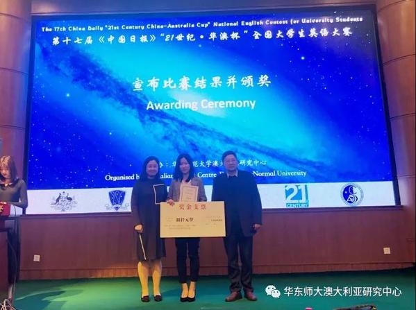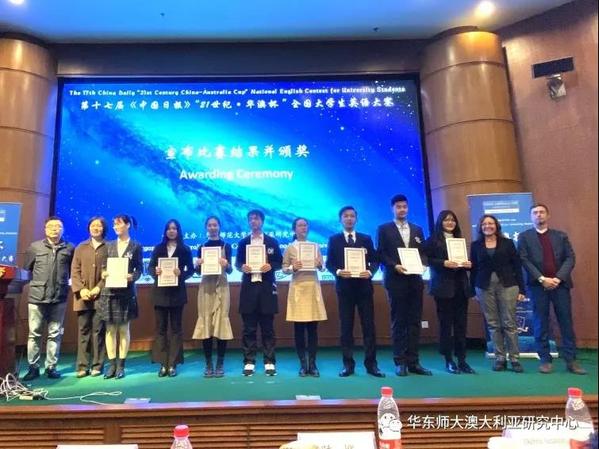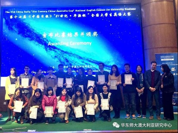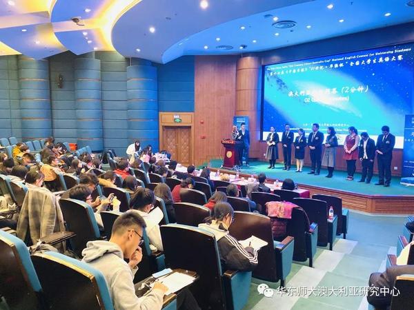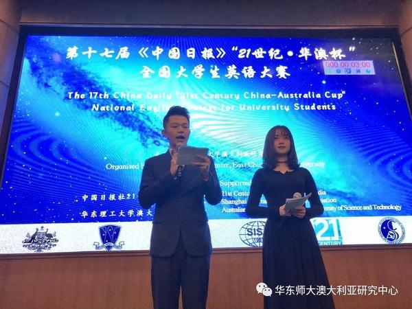 12月7日,由华东师范大学澳大利亚研究中心主办的第十七届《中国日报》“21世纪·华澳杯”全国大学生英语大赛在我校中山北路校区逸夫楼报告厅成功举办,来自北京、上海、山东、江苏、安徽、四川、云南、陕西、青海、新疆、内蒙古、黑龙江等省市26所高校的选手在丽娃河畔同台较量。