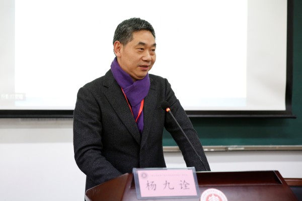 第二组主旨发言由上海外国语大学李锋教授主持,华东师范大学杨九诠教授担任评议人。上海外国语大学周敏教授的报告“景观社会的分裂主体:以德里罗的《美国志》为中心”,通过对德里罗的小说《美国志》进行文本解读,指出所谓的“第三人”就是媒介文本所内蕴的形象,景观社会的主体在解码媒介文本的过程中将这“第三人”转变为自己的认同对象,置换了自我原有的身份认同,从而使自己的主体身份成为摹本之摹本。中国社会科学院外国文学研究所陈雷研究员发表了题为“君主与他的‘大厅’——对共同体的最早想象”的主旨演讲。他认为,我们习以为常的“社会”概念是有一个源头的。社会是在《贝奥武甫》中“鹿厅”这样的地方第一次以一种形象的方式向其成员展现出它自身的。作为鹿厅的保卫者,贝奥武甫保卫的实际上是社会。在社会形成之初,人们虽还无抽象的“社会”概念,却已经用神话语言和神话思维回答了什么是社会以及什么是社会的敌人这一问题。中国矿业大学吴格非教授做了题为“跨学科、跨语言、跨文化:中国矿业大学外国语言文学学科下比较文学与跨文化研究方向(硕士点)内涵建设”的报告。吴教授指出,作为教育部学位办在外国语言文学一级学科下新设的研究方向,比较文学与跨文化研究应本着强化优势特色方向、与传统的英语语言文学学科方向错位发展的原则,进一步突出重点、优化布局,力争在高层次人才引进和培养、学位点建设、高水平项目申报、高水平科研成果产出等方面取得新突破。上海交通大学尚必武教授则围绕着“虚构性”(fictionality)这一西方叙事学界近期的热门话题展开了论述。他的演讲“什么是‘虚构性’?”主要阐释了“虚构性的讨论从何而来”、“虚构性的定义与内涵是什么”和“虚构性何以有效地介入文学批评”这三个问题。他从故事与话语的双重层面来综合审视叙事文本的虚构性,辨析其在文学作品中的再现手段、文本表征与修辞效果,对未来学界的虚构性研究提出了若干富有建设性的建议。华东师范大学金衡山教授做了题为“承续传统,表征时代:人类命运共同体思想对外国文学研究的启示”的演讲。金教授从时代背景与历史语境的解读出发,阐释了人类命运共同体思想的内涵与基础是包括民主与自由在内的全人类的共同价值,而正是这种共同的心理和社会基础给比较文学与跨文化研究带来了启示。借钱钟书先生《诗可以怨》一文,金教授指出,钱先生的讨论让我们在了解西方文化的同时,也更加深入地了解了自己的文化,同时更有准备地面对当下,而这是承续传统、表征时代最好的表现。