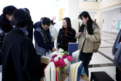 开幕式结束后,日语系主任尹松老师结合“日语视听说”课程,带领大二的学生前来参观。“我们正好讲到日本歌曲歌词中展现的人生意义,和同学们在这个展览里回忆了一下自己日语学习的往事”,尹松老师说:“我是85年上大学的,那时班里有一个台式转盘的录音机,大家下课后就围着录音机,带着耳机听日语练发音。那时我们还喜欢听歌学日语,先听写歌词,再跟着学唱。我记得我学会的第一首日语歌曲是‘冰雨’……”英语系侯敏跃老师回忆起当年与老师们度过的美好时光:“我是上大学后(80年代上半叶)才在英语的学习中知道了西方的April Fools' Day(愚人节),我们全班还在某一年的四月一日跟年轻的任课老师开了个小玩笑,不过老师也没有生气……那时候的师生关系其乐融融,像朋友一样,我也希望能在我的教学中跟学生‘打成一片’”。俄语系刘玉琴老师在一张合照前徘徊良久,她回忆起自己刚做老师的时候,经常把来自北方的同学接到家里包饺子,“真是睹物思人,现在这种师生关系好像变淡了,但相信随着我们育人工作的不断推进,老师跟学生的关系能够越走越近”。德语系主任宋健飞老师提到了当年“自学成才”的情形,“1976年,我当时在部队当兵,学外语是件极为另类的事情,但我自中学起就对外语产生了浓厚的兴趣,于是,在熄灯号响过之后,我便钻进被窝,悄悄地打开手电,如饥似渴阅读浅显的外语教材和通俗读物,后来就靠坚持收听上个世纪70、80年代风靡一时的业余外语广播讲座而进行自学,最终通过1978年的全国统一高考,身穿军装走进了一所地方外语院校。”