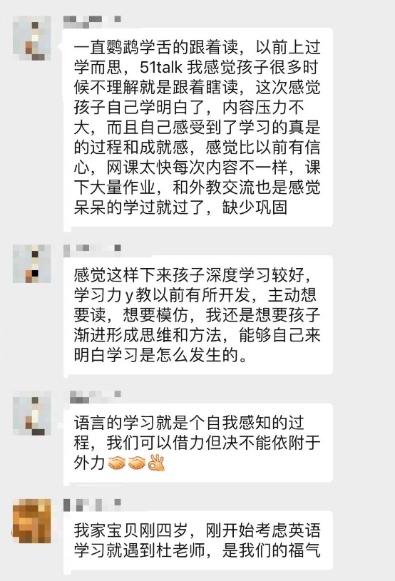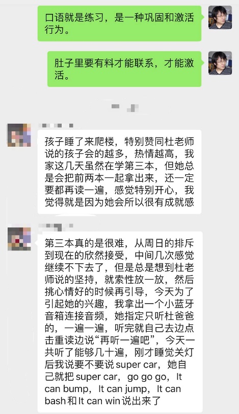 杜老师的爱心课程获得了家长们的认可,上海一位二年级学生家长反馈:“到现在孩子已经做了三次作业,不仅不排斥,而且很喜欢。感谢华东师大ag平台 ,感谢杜老师,感谢平台的幕后老师,感谢你们在这次疫情中给我们送来了温暖。”一位山东淄博的家长说道:“我们是第一次接触英语,意外的是孩子很喜欢这个教学模式,每天会主动拿着书本配着教材阅读训练。在这感谢每一位辛勤付出的老师们,让孩子有了一个这么好的启蒙开端,希望每个小朋友都能好好学习。”甚至还有家长称,她在孩子学习英语之余,从这次爱心课程中受到了启发与触动,她动情地说:“我从这个爱心课程群里学到的,真的不只是孩子的学习这件事,还有很多奉献的大爱的精神,任何时候都脚踏实地,除了教育孩子,也反思自己。”