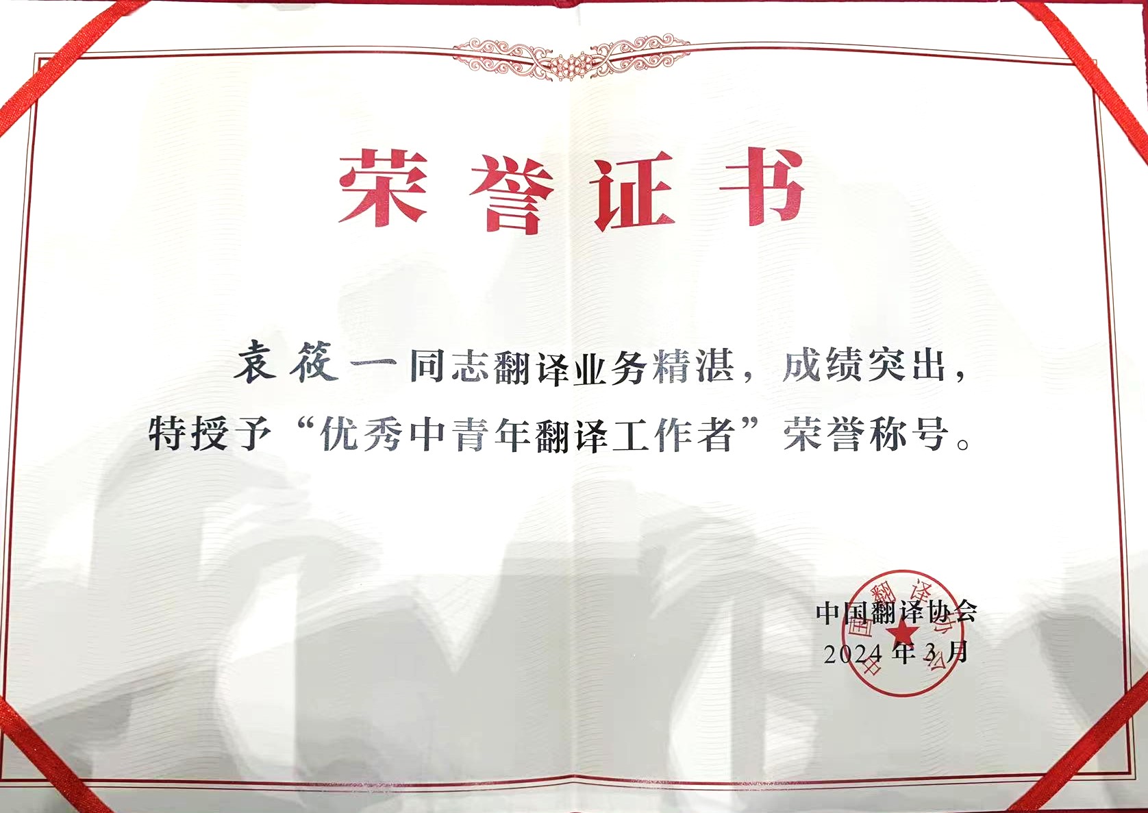 中国翻译协会成立于1982年,是我国翻译领域唯一的全国性社会团体,由分布在全国各省区市的单位会员和个人会员组成。中国翻译协会先后设立“资深翻译家”(2001年)、“翻译文化终身成就奖”(2006年)、“翻译中国外籍翻译家”(2022年)等系列奖项。2024年,协会新增“优秀中青年翻译工作者”荣誉奖项,旨在表彰胸怀祖国、融通中外、翻译业务精湛、成绩突出的中青年翻译工作者。